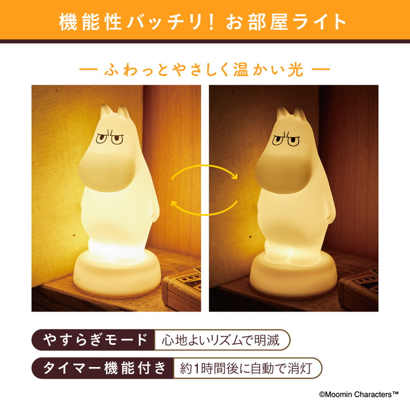 發售日:2023/11/16 生氣的表情真是可愛得讓人無法抗拒~ 流行的“憤怒的姆明”成為房間燈 累計銷量突破58萬張,大獲成功! 「姆明房間燈」系列中新增了一個新的「憤怒姆明」版本,帶有可愛的略帶生氣的臉。 「憤怒的姆明」因其無憂無慮的表情而廣受歡迎,也被用於毛絨玩具和其他商品。 燈光發出溫暖溫柔的光芒,就連表情也很可愛,具有極佳的舒緩效果。 姆明 (Moomin) 從任何角度看都顯得可愛,由柔軟的矽膠製成,重量約為 100 克。 由於它是無線的並且可以自由攜帶,因此您可以在各種地方欣賞它,例如白天作為裝飾品,晚上作為室內燈。 在閱讀或寫信、喝茶或其他放鬆時刻時,可以將其用作方便的燈,或將其與食物放在餐桌上,營造時尚的用餐氛圍。 可愛的姆明發出的柔和光芒帶來了特別的時刻。 我們也推薦“閃爍模式”,它像蠟燭一樣緩慢閃爍。 當你看著它時,你會被一種平靜的感覺所包圍。 它還具有計時器,大約一小時後會自動關閉燈,因此您可以將其放在枕頭旁邊並戴著它睡覺。 LED 不會變熱,因此您可以安全可靠地使用它。 \ 優秀的功能/ 1. 由柔軟的矽膠製成,因此您不必擔心它會破裂。 2. LED,不會發熱,安全! 3. 超輕且無線,可放置在任何地方 (*使用電芯) 4 只需輕按頂部即可輕鬆切換模式和關燈 5.配備舒適緩慢閃爍模式 6. 附定時器功能,約1小時後自動關燈 7. 憤怒表情的姆明太可愛了,360°任何角度都會被治癒 ♪ \享受各種場景♪/ ♪ 照亮床頭的燈 ♪ 作為閱讀或工作時方便的燈 ♪ 供您用餐或喝茶的時間表 ♪ 白天可以作為時尚的室內裝飾對象 ♪ 代替蠟燭 尺寸(約):高 16.6 x 寬 8 x 深 8 公分(最大) 材質:ABS樹脂、矽膠、LED燈 ------------------------------ 📍預計到貨時間 發售日後約2-3星期工作天