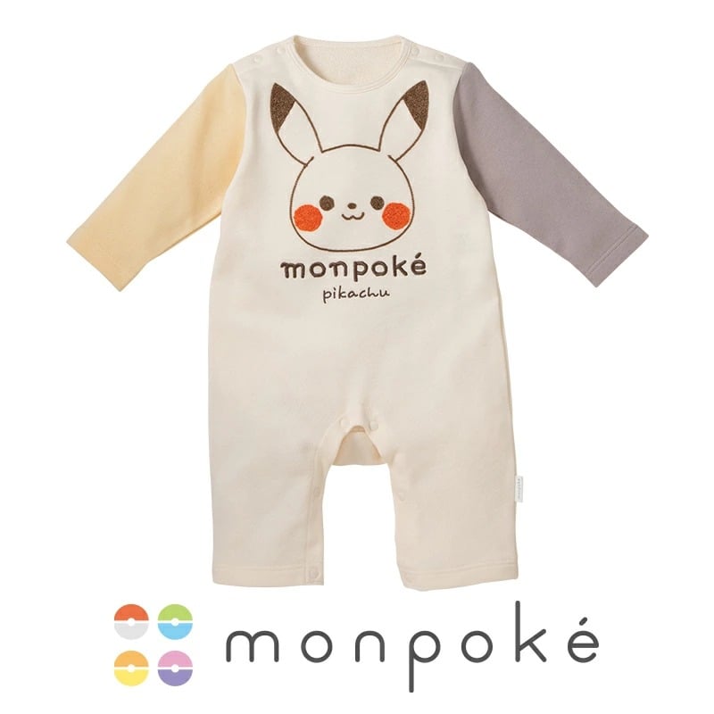 Monpoke 秋冬新品 比卡超拼色刺繡長袖衣 70-80cm