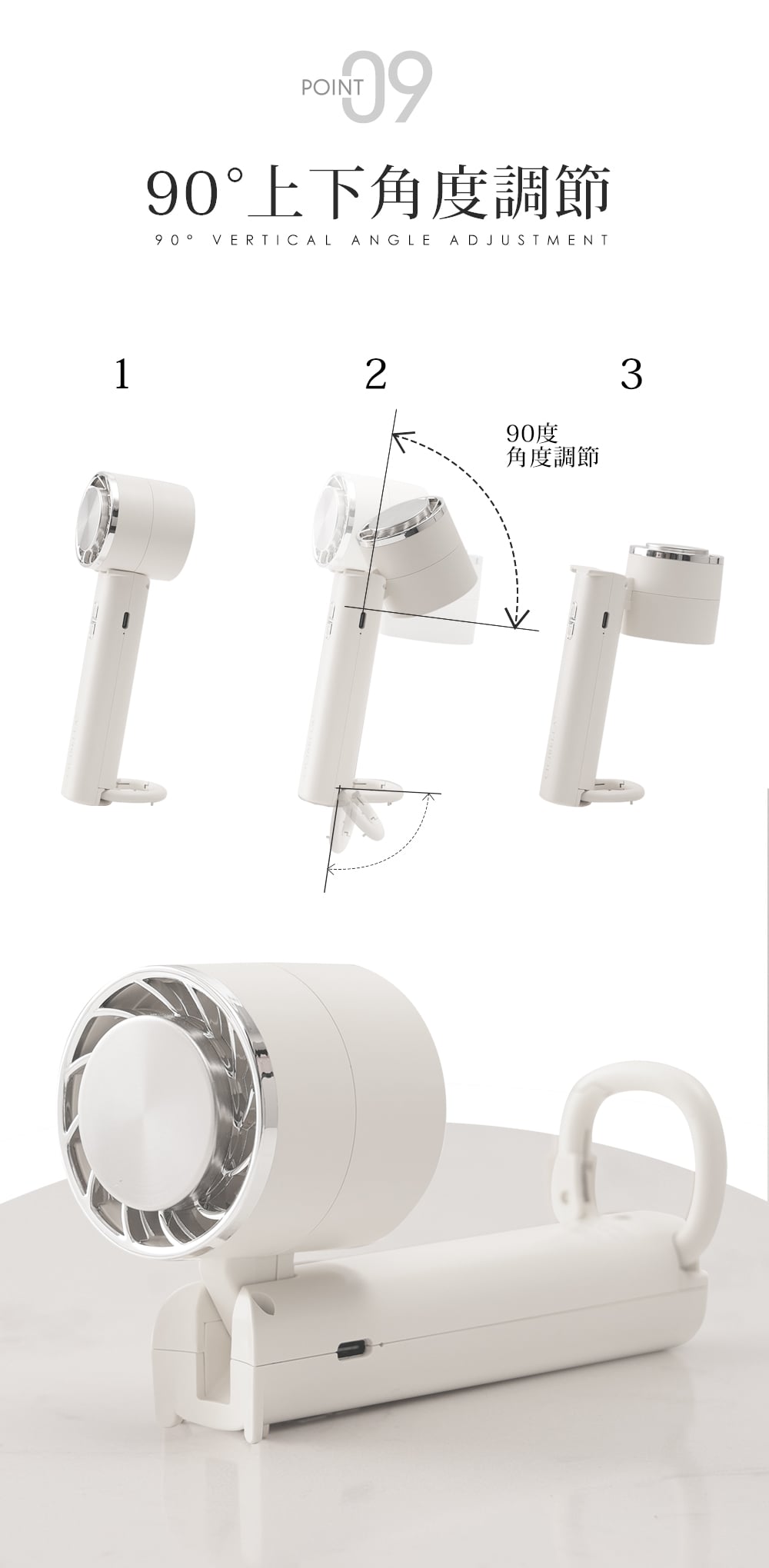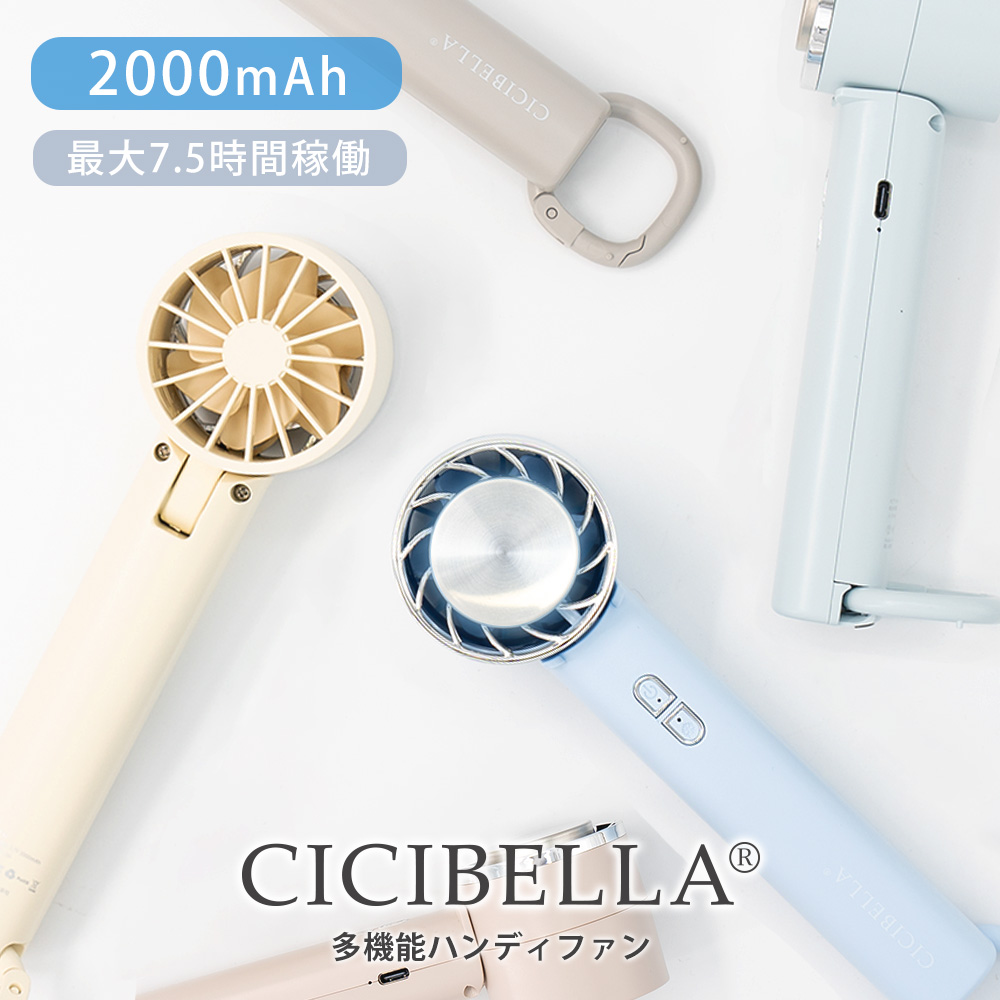 接觸冷感-10度!CICIBELLA 冰感迷你手持風扇 配有冷卻板 長時間使用 超輕便 角度調節 三級風力調節 2024新版